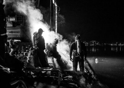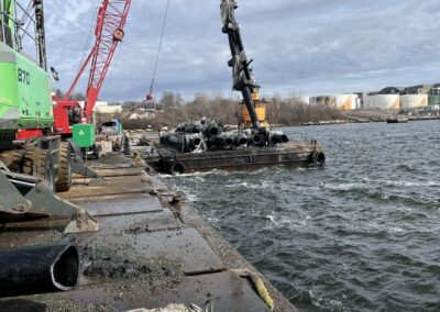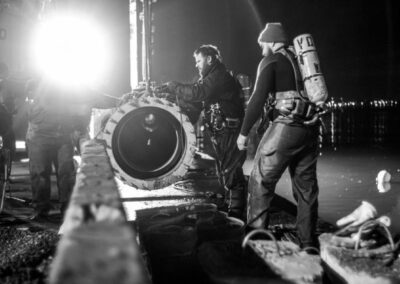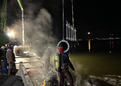 Shoreline Diving with a Team from Mohawk Northeast relocated the Groton sewer outfall. This was a challenging winter job in zero visibility 32 degree water and diving at night.